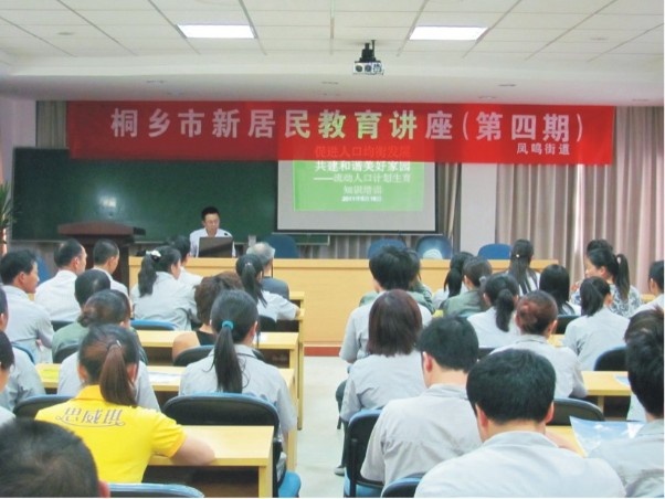 5月16日下午,鳳鳴街道在我公司舉辦新居民教育講座。桐鄉(xiāng)市新居民事務(wù)管理局的有關(guān)同志給公司80余名員工就新居民計(jì)劃生育政策進(jìn)行了講課,使新居民員工得到了一次政策服務(wù)。