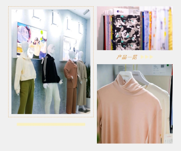 專注于多纖混紡、功能型產品的集成創新及持續性的延伸開發與應用,擁有家居內衣、童裝、休閑運動